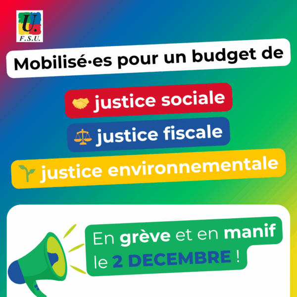 MISE A JOUR : La manifestation du 18 septembre partira de la place de la Bastille à 14h. La FSU 92 Mobilisée pour un tout autre budget, pour la redistribution des richesses, pour les droits sociaux, pour la Fonction publique et les services publics La FSU appelle à se mobiliser massivement, dans la durée, pour empêcher la mise en oeuvre de tout budget qui serait inspiré par les mêmes [...]