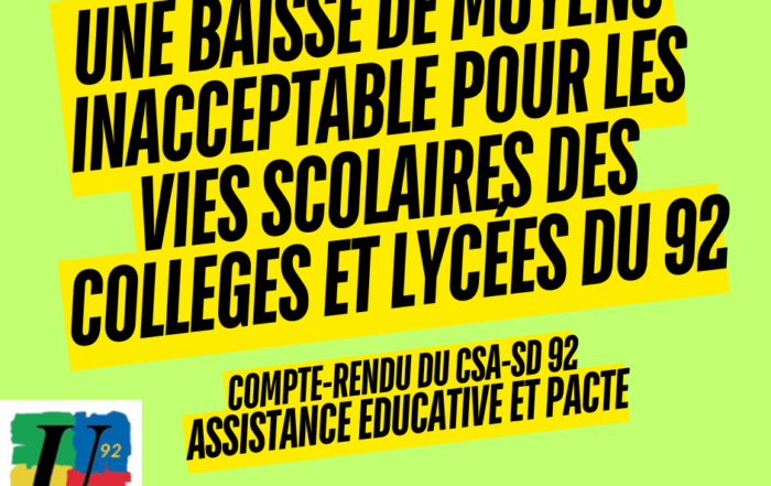 CSA-SD 92 assistance éducative et Pacte : La FSU dénonce une baisse de moyens inacceptable pour les vies scolaires des collèges et lycées du 92