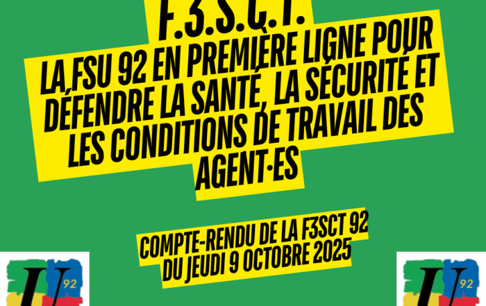 F3SCT 92 du 9 octobre 2025 : déclaration de la FSU 92 et avis