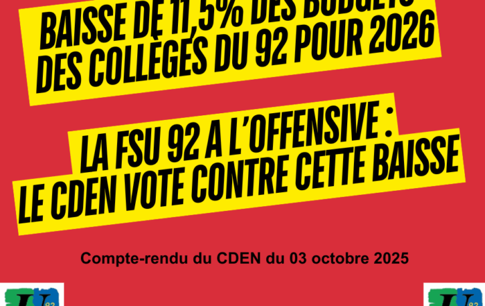 CDEN du 3 octobre : la FSU à l’offensive contre la baisse de 11,5% des budgets des collèges