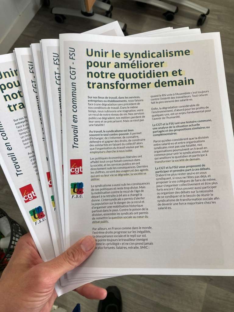 Présentation du travail commun entre la CGT et la FSU :